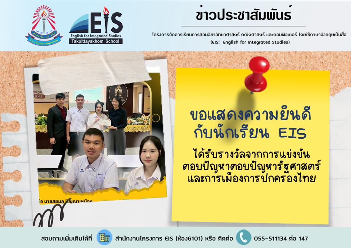 โครงการห้องเรียน EIS ขอแสดงความยินดีกับ