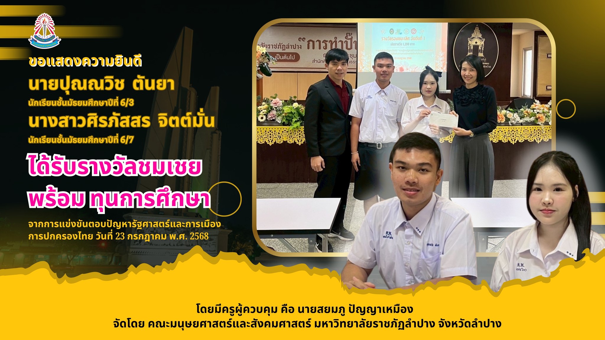 ได้รับรางวัลจากการแข่งขันตอบปัญหาตอบปัญหารัฐศาสตร์และการเมืองการปกครองไทย