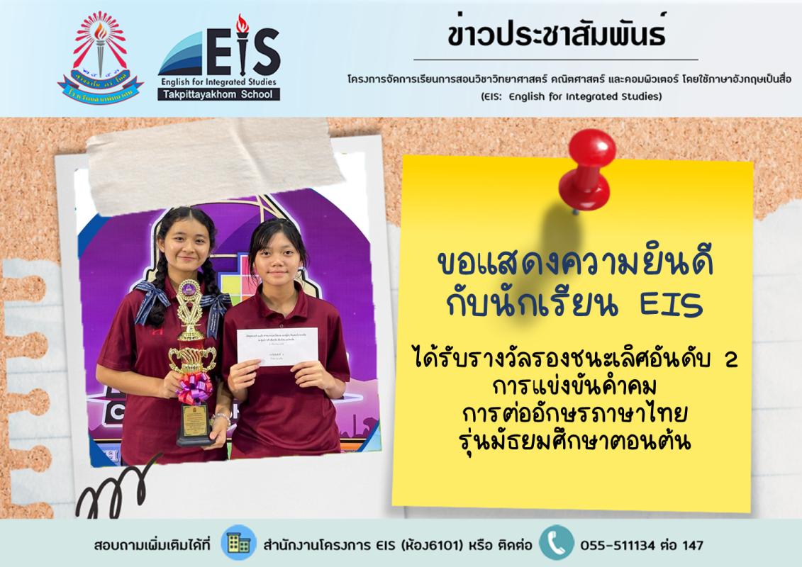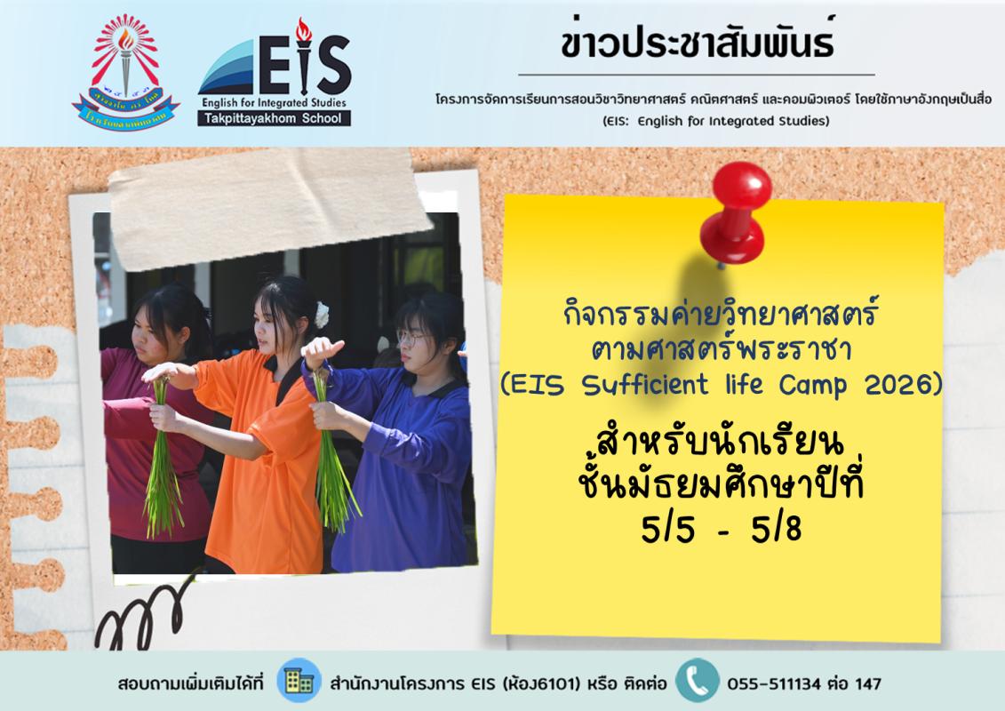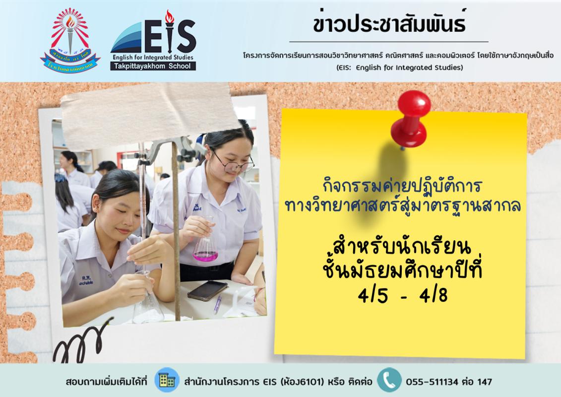 โครงการห้องเรียน EIS จัดกิจกรรมค่ายปฏิบัติการทางวิทยาศาสตร์สู่มาตรฐานสากล สำหรับนักเรียนชั้นมัธยมศึกษาปีที่ 4/5 - 4/8