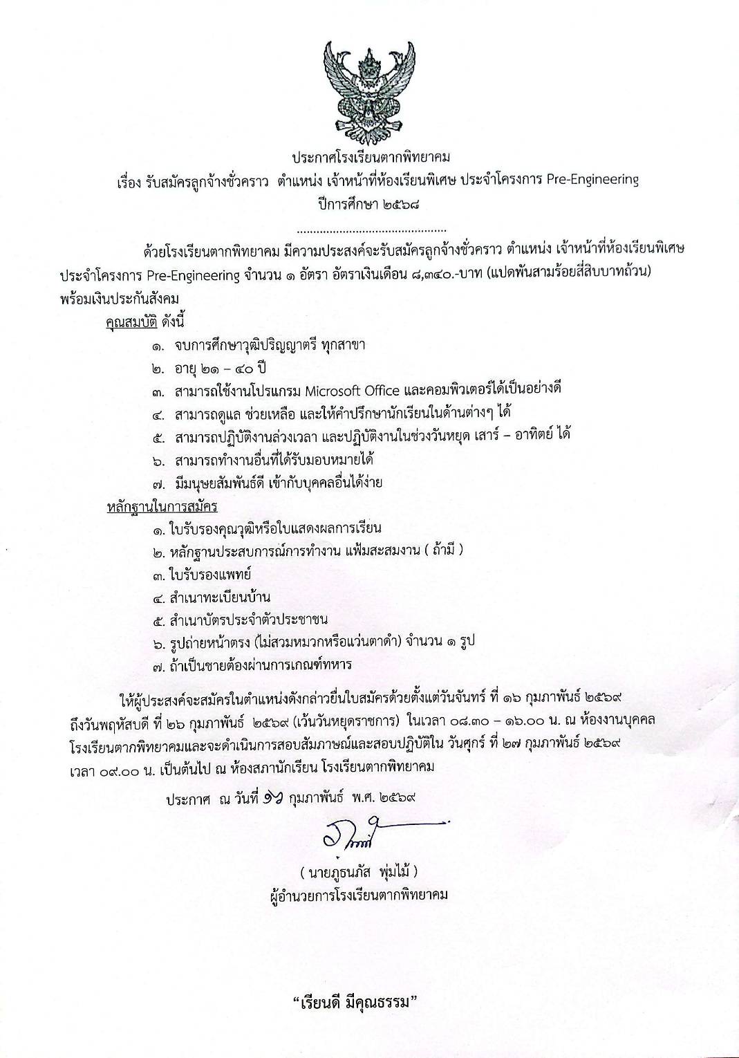 ด้วยโรงเรียนตากพิทยาคม มีความประสงค์จะรับสมัครลูกจ้างชั่วคราว