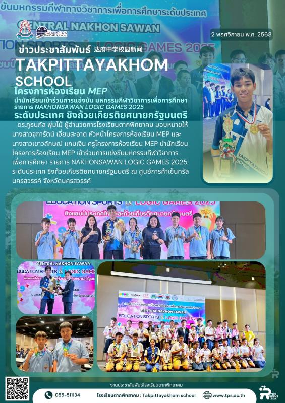 โครงการห้องเรียน MEP นำนักเรียนเข้าร่วมการแข่งขันมหกรรมกีฬาวิชาการเพื่อการศึกษา รายการ NAKHONSAWAN LOGIC GAMES 2025 ระดับประเทศ ชิงถ้วยเกียรติยศนายกรัฐมนตรี