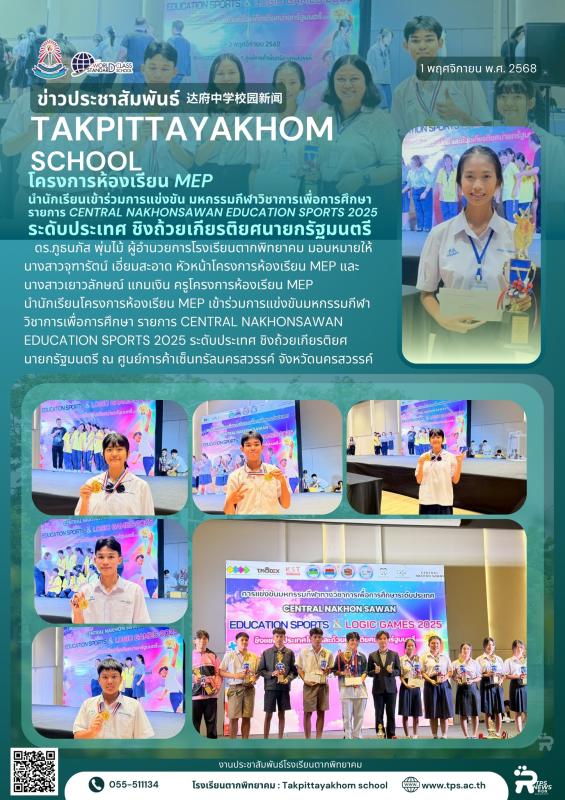 โครงการห้องเรียน MEP นำนักเรียนเข้าร่วมการแข่งขันมหกรรมกีฬาวิชาการเพื่อการศึกษา รายการ CENTRAL NAKHONSAWAN EDUCATION SPORTS 2025 ระดับประเทศ ชิงถ้วยเกียรติยศนายกรัฐมนตรี